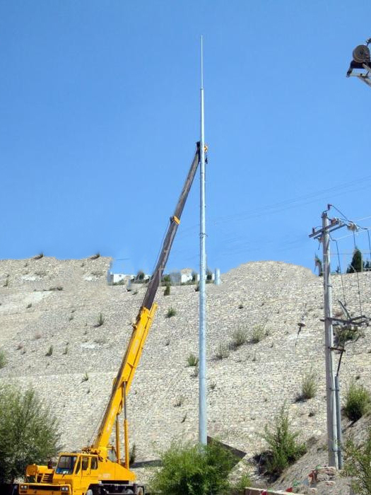 將避雷針的各段首尾連接(法蘭連接或插接法),固定在預(yù)埋的基礎(chǔ)底座上。(有些配件需要工程商根據(jù)實際情況加工)可以人工安裝也可以機(jī)械吊裝。
