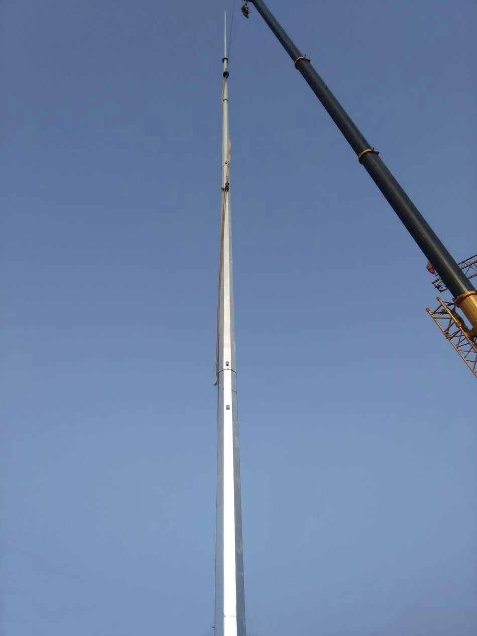 將避雷針的各段首尾連接(法蘭連接或插接法),固定在預(yù)埋的基礎(chǔ)底座上。(有些配件需要工程商根據(jù)實際情況加工)可以人工安裝也可以機械吊裝。