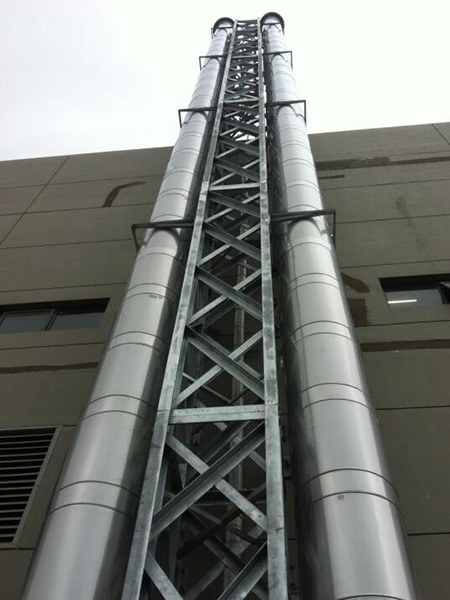 不銹鋼煙囪安裝時,內(nèi)外筒體分別連接。內(nèi)筒體端部與法蘭連接,外筒體通過端環(huán)蓋連接。獨特的連接方式使產(chǎn)品安裝方便快捷,無需焊接。與傳統(tǒng)的煙囪安裝相比,可大大縮短施工周期,降低成本。煙囪垂直安裝時,一般是垂直貼墻或拉線,水平方向通過支吊架與建筑物相結(jié)合。
