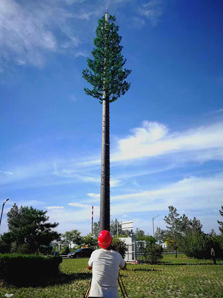 仿生樹,又叫仿生塔、仿生通訊塔,屬于通信發(fā)射塔技術(shù)領(lǐng)域。是讓通信鐵塔與周圍的自然環(huán)境相協(xié)調(diào),有效地解決了風(fēng)景區(qū)等地建站難的問題,其優(yōu)點(diǎn)是保持了原有單管塔的所有優(yōu)點(diǎn),在其外形上作了重大的突破、改進(jìn),以自然生長的松樹,樟樹等為仿真的造型樣本,設(shè)計(jì)素描圖和電腦效果圖,制訂雕塑和噴涂工藝程序,對(duì)單管塔仿真?zhèn)窝b,使人們察覺不到塔的存在,把它融入了周圍的自然環(huán)境中。
