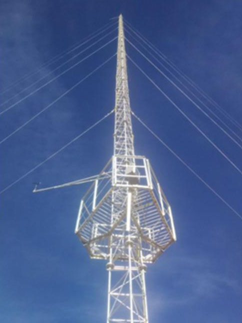 中波塔又稱電視信號發(fā)射塔俗稱電視塔。采集塔柱采用外法蘭盤連接,螺栓受拉,不易破壞,鋼絞線加固。塔柱正三角