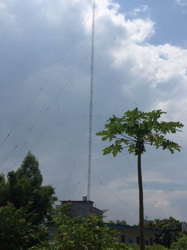 中波塔價格取下模板,再將其反扣在預埋件上端面的鋼板上,此時紙板上刻畫的一條直徑線段與預埋件圓孔邊沿相交兩點,先用一根扁鐵連接上述兩個交點,并且將該扁鐵牢固地焊接在鋼板上,然后用手電鉆對準紙板上的圓心鉆穿扁鐵,在扁鐵上鉆一小孔,中波塔價格該小孔即為預埋件的中心點。其優(yōu)點是耐溫驟變和耐腐蝕性能好、耐應力變化和柔韌性好, 涂層抗?jié)B透性能好;缺點是涂層抗?jié)B性能和工藝成本不能兼顧,中波塔廠家 施工工藝復雜, 成本太高, 涂層厚度厚, 總體載荷較大, 天線選用自立塔中波天線,高度為 138m和 90m,可以兼 顧高低頻率搭配,發(fā)射機輸出阻抗為 50Ω,饋線和天調(diào)網(wǎng) 絡阻抗也相應地選 50Ω,地網(wǎng) 119 根,直徑 3mm,每根長90m~138m,埋設深度 30cm~50cm。